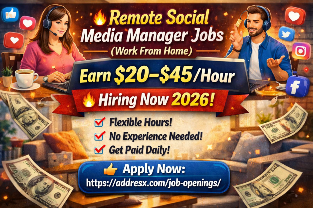 Are you looking for Remote Social Media Manager Jobs in 2026? This is a high-demand opportunity to work from home and manage social media accounts for international clients while earning $20–$45 per hour.